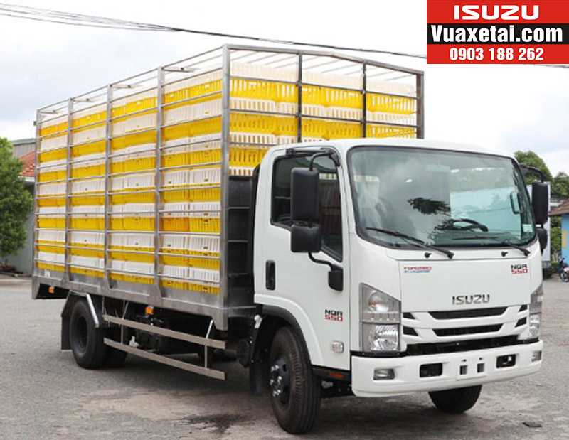 Xe tải Isuzu chở gia cầm 5 tấn model NQR75ME4 - Kích thước lọt lòng : 6140x2140x2300 mm - tải trong :4750kg - chở 224 lồng
